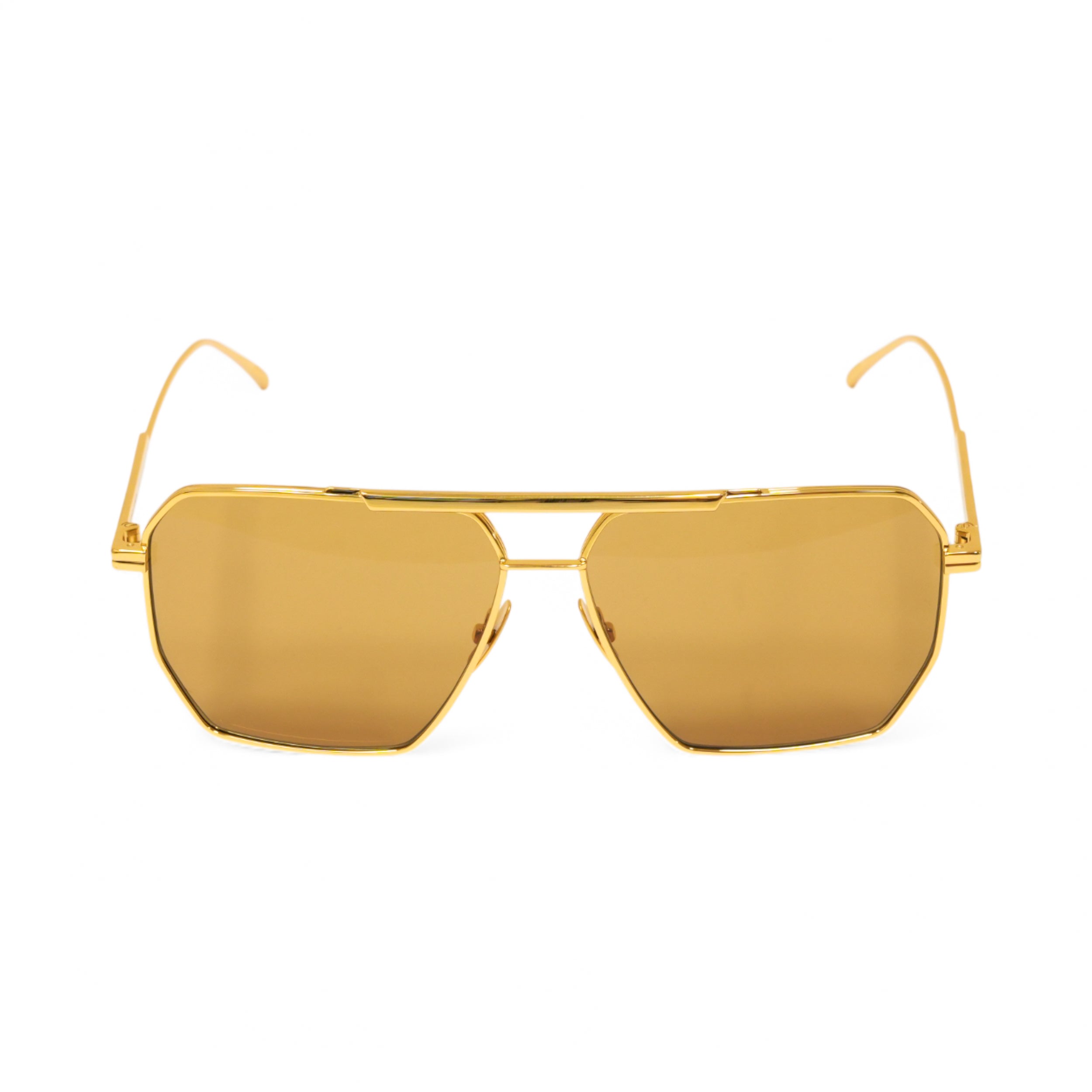 Occhiale in metallo dorato con doppio ponte, lenti gialle perfette per un look da alta passerella!
