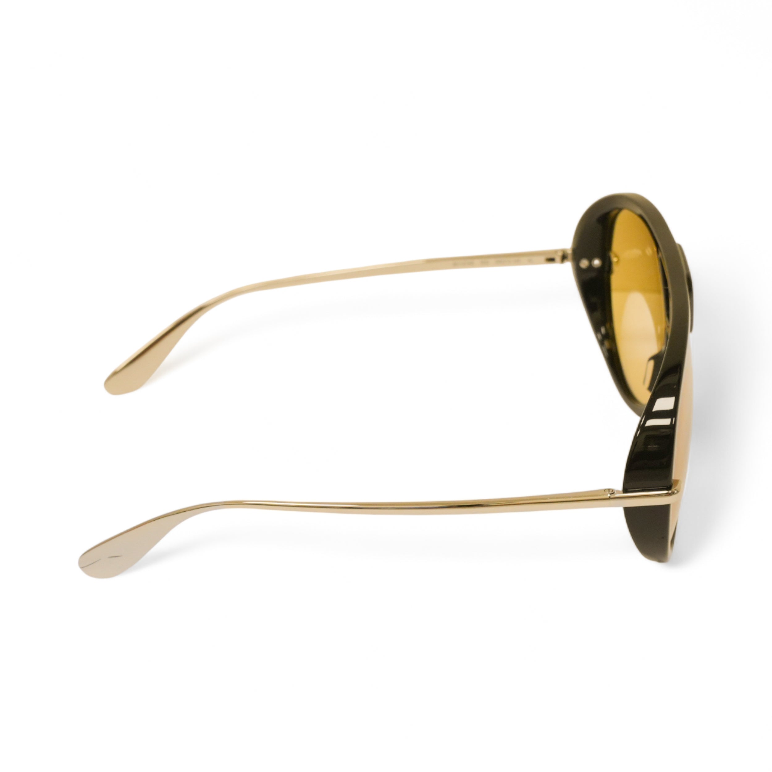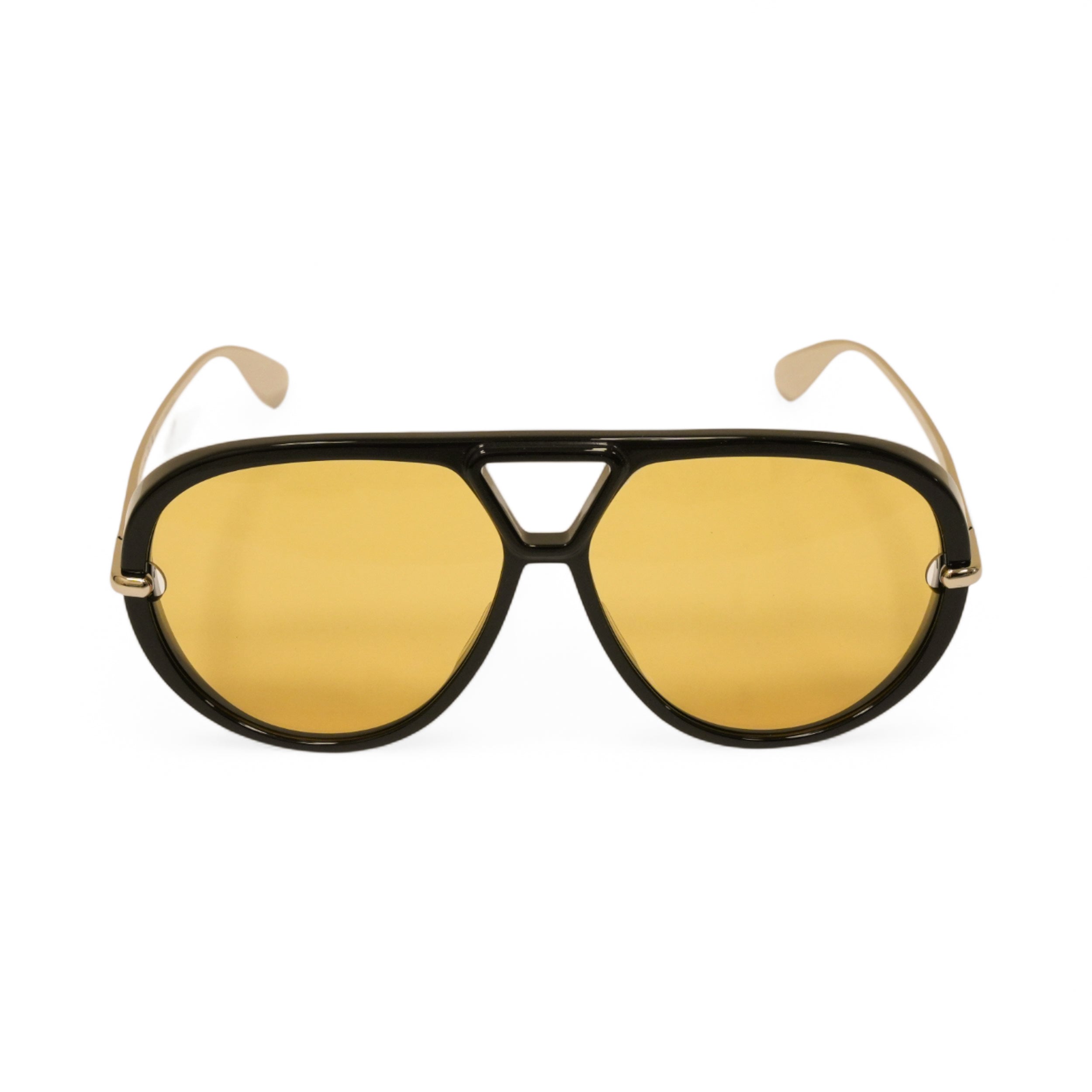 Montatura oversize aviator in acetato nero, con lenti cosmetiche gialle e aste argento.