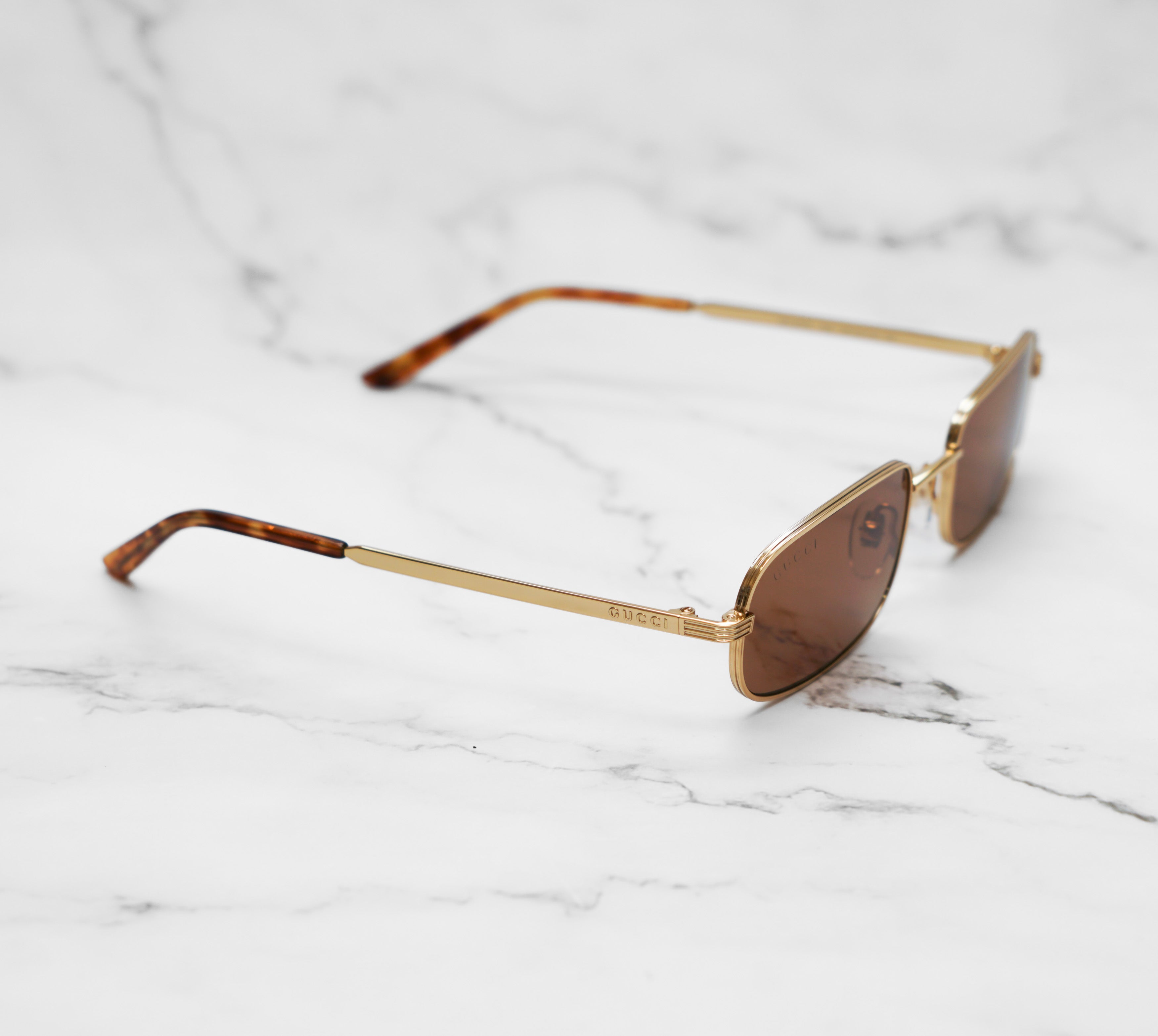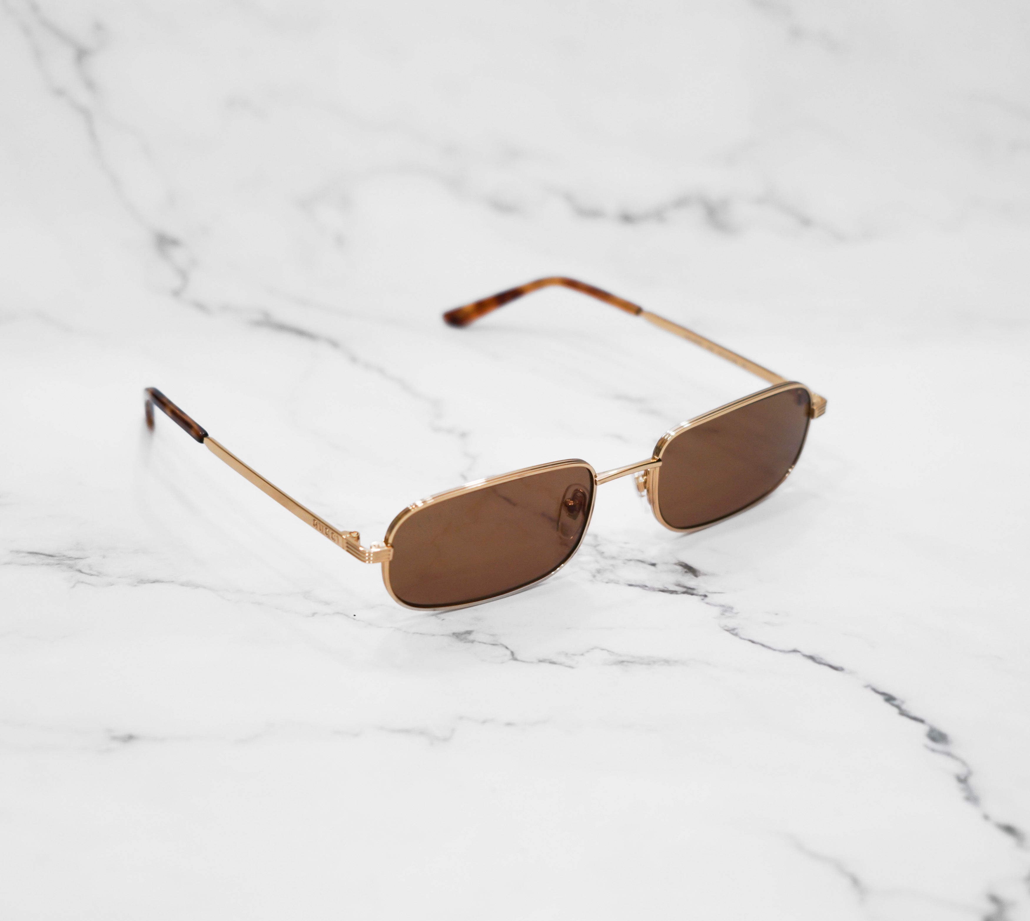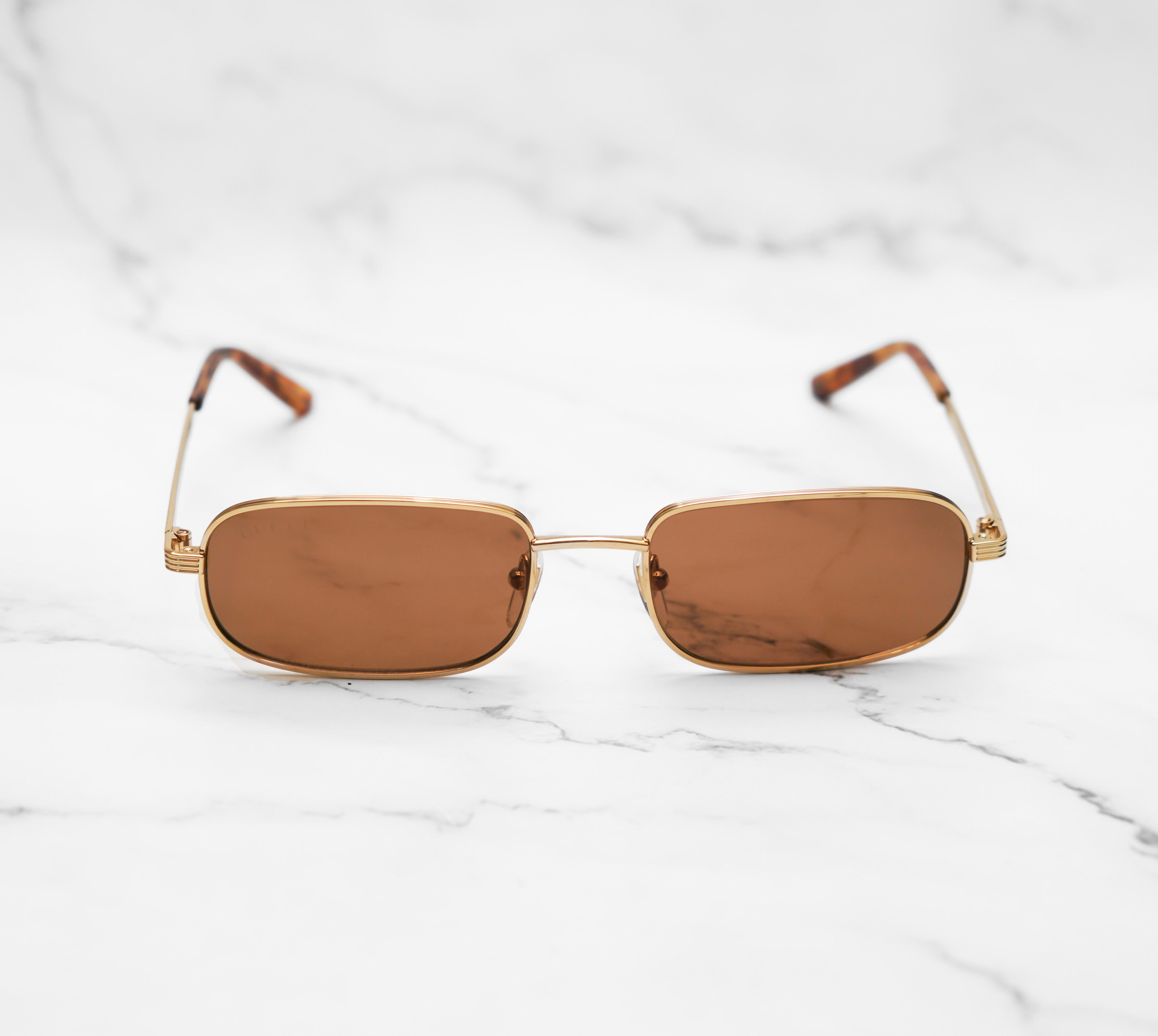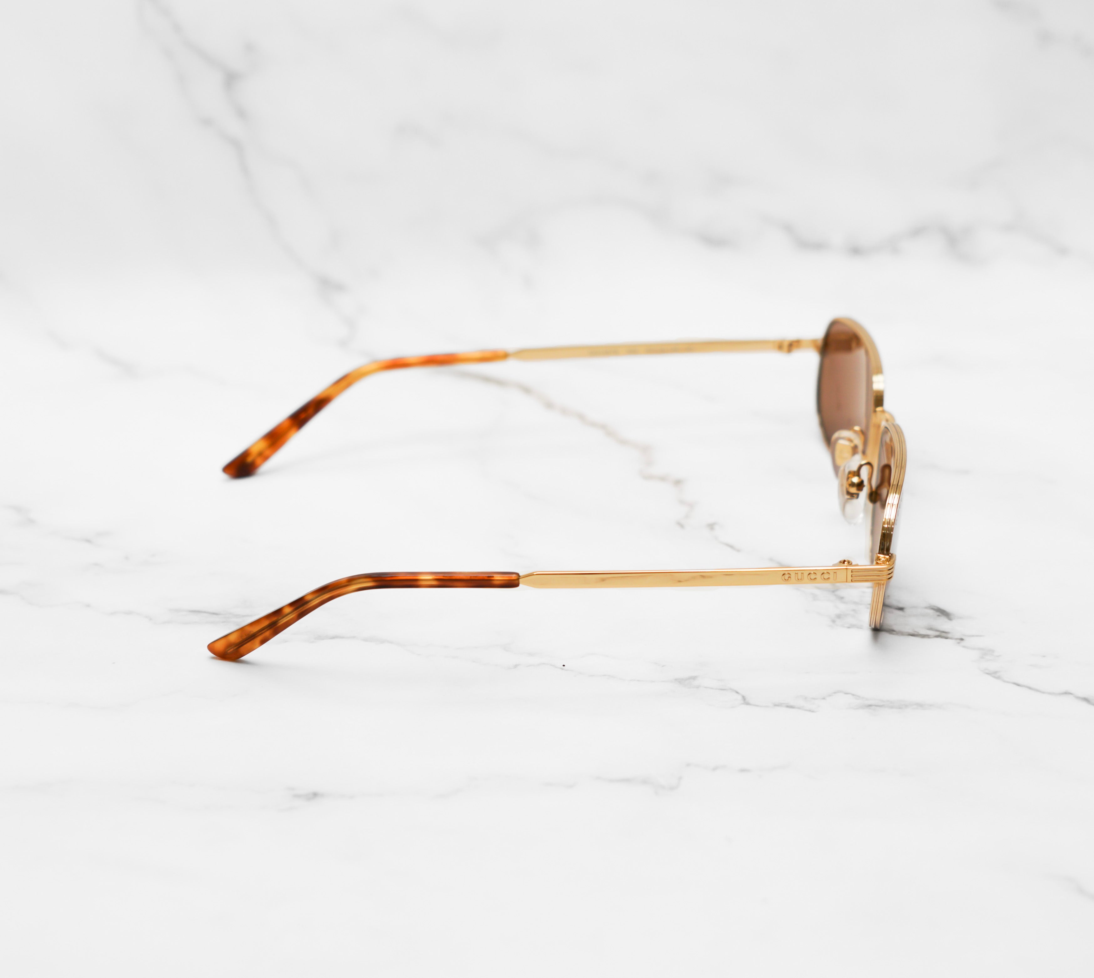Il concept è ispirato a creazioni Gucci vintage d’archivio reinterpretate in chiave urban di tendenza. Forma caravan con doppio ponte in metallo dorato e lenti in colorazione Brown. Perfetti per sentirti fashion in ogni occasione!