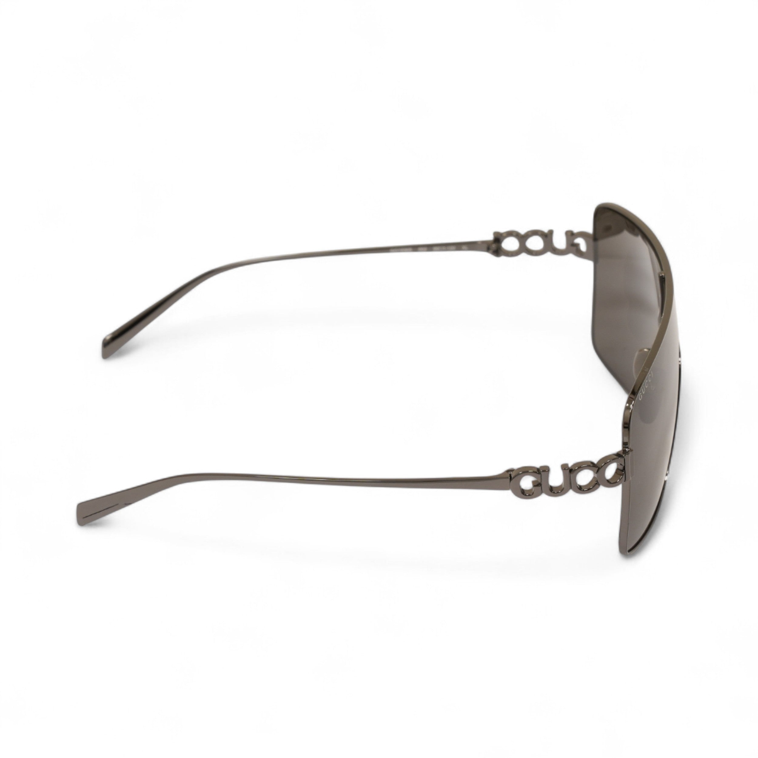 Il concept è ispirato a creazioni Gucci vintage d’archivio reinterpretate in chiave urban di tendenza. Occhiali oversizione a mascherina in metallo grigio impreziositi da iconici dettagli grigi del brand. Perfetti per sentirti fashion in ogni occasione!