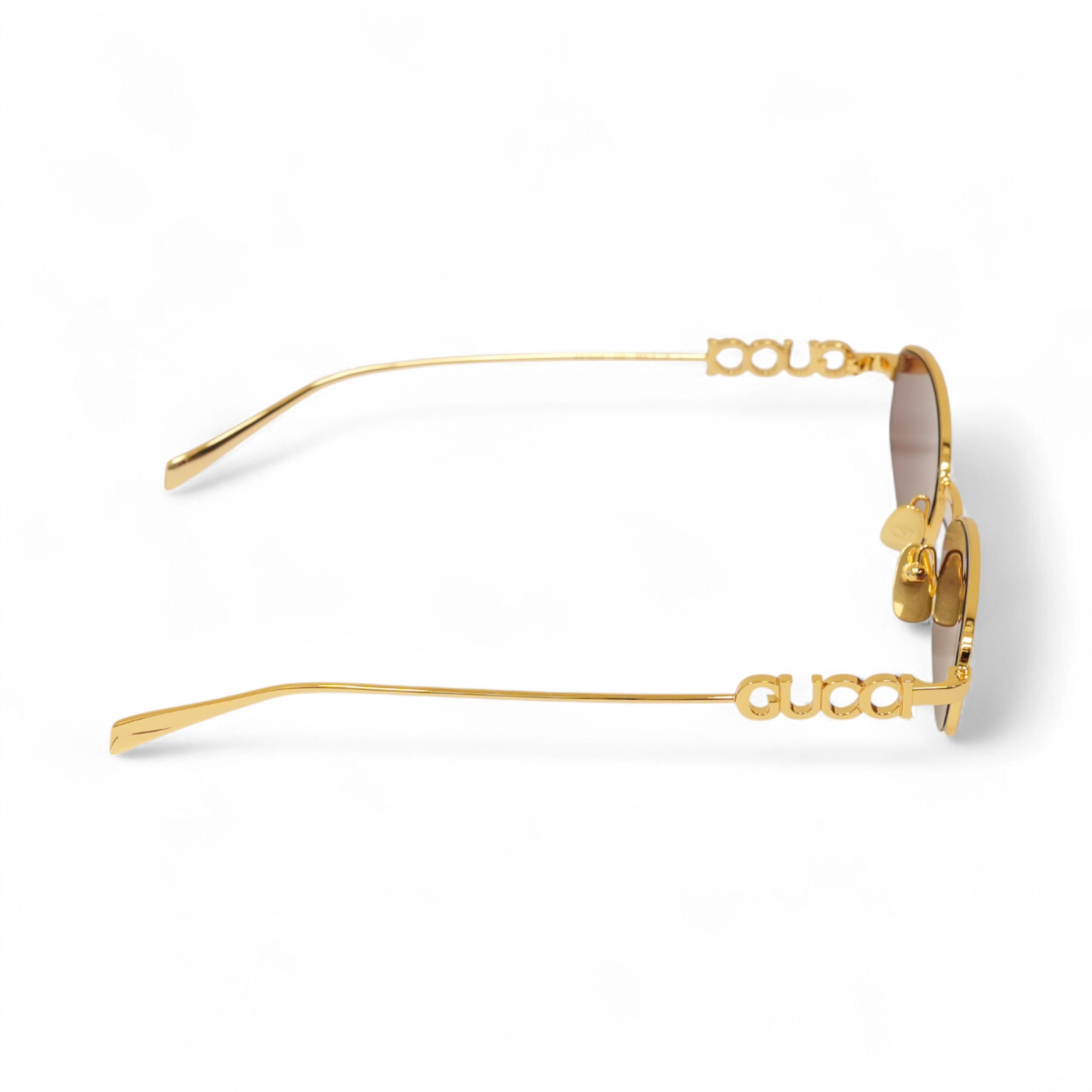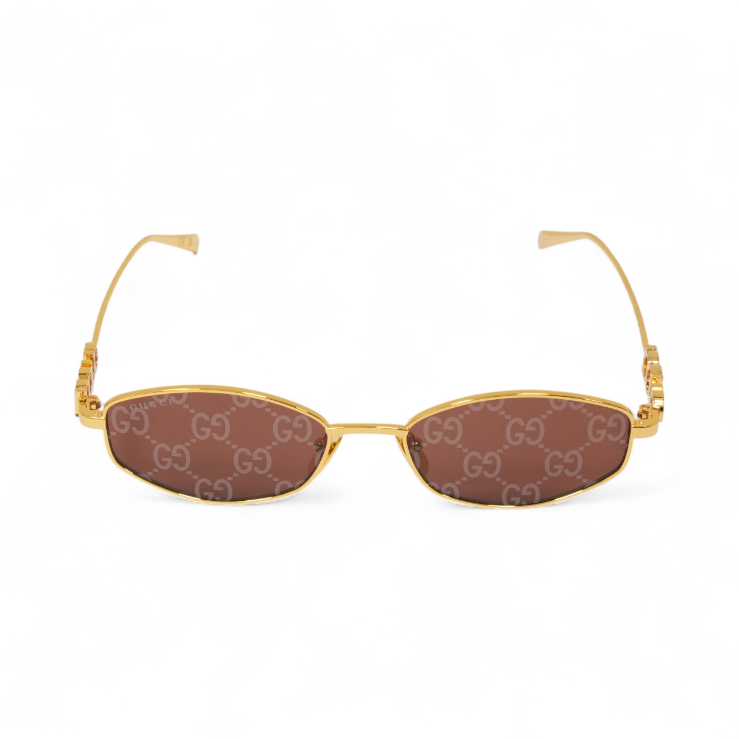 Il concept è ispirato a creazioni Gucci vintage d’archivio reinterpretate in chiave urban di tendenza. Occhiali ovali in metallo dorati con lenti marroni logate. impreziositi da iconici dettagli oro del brand. Perfetti per sentirti fashion in ogni occasione!