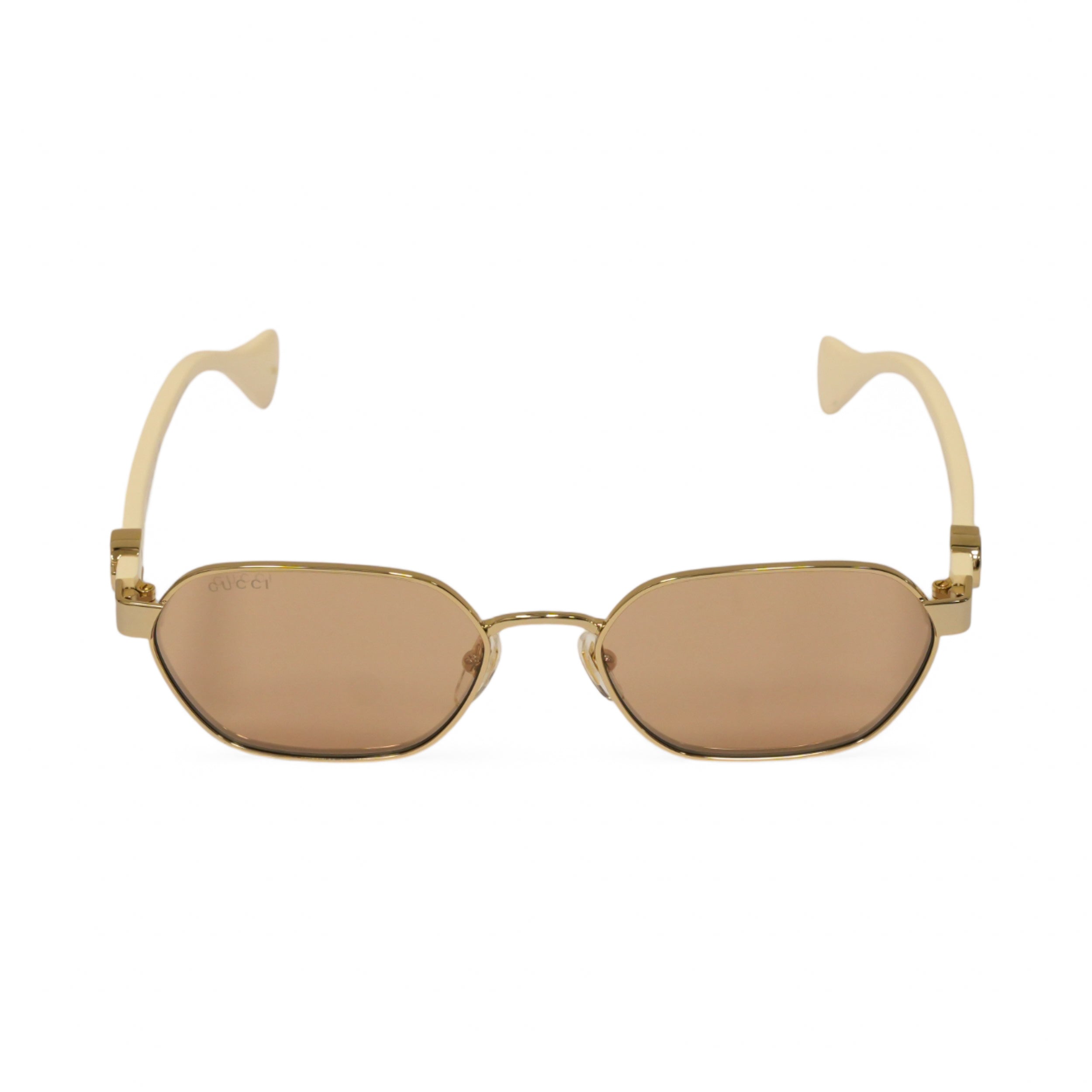 Il concept è ispirato a creazioni Gucci vintage d’archivio reinterpretate in chiave urban di tendenza. Occhiali esagonali in metallo con lenti marroni, aste in acetato con musetti dorati. Perfetti per sentirti fashion in ogni occasione!