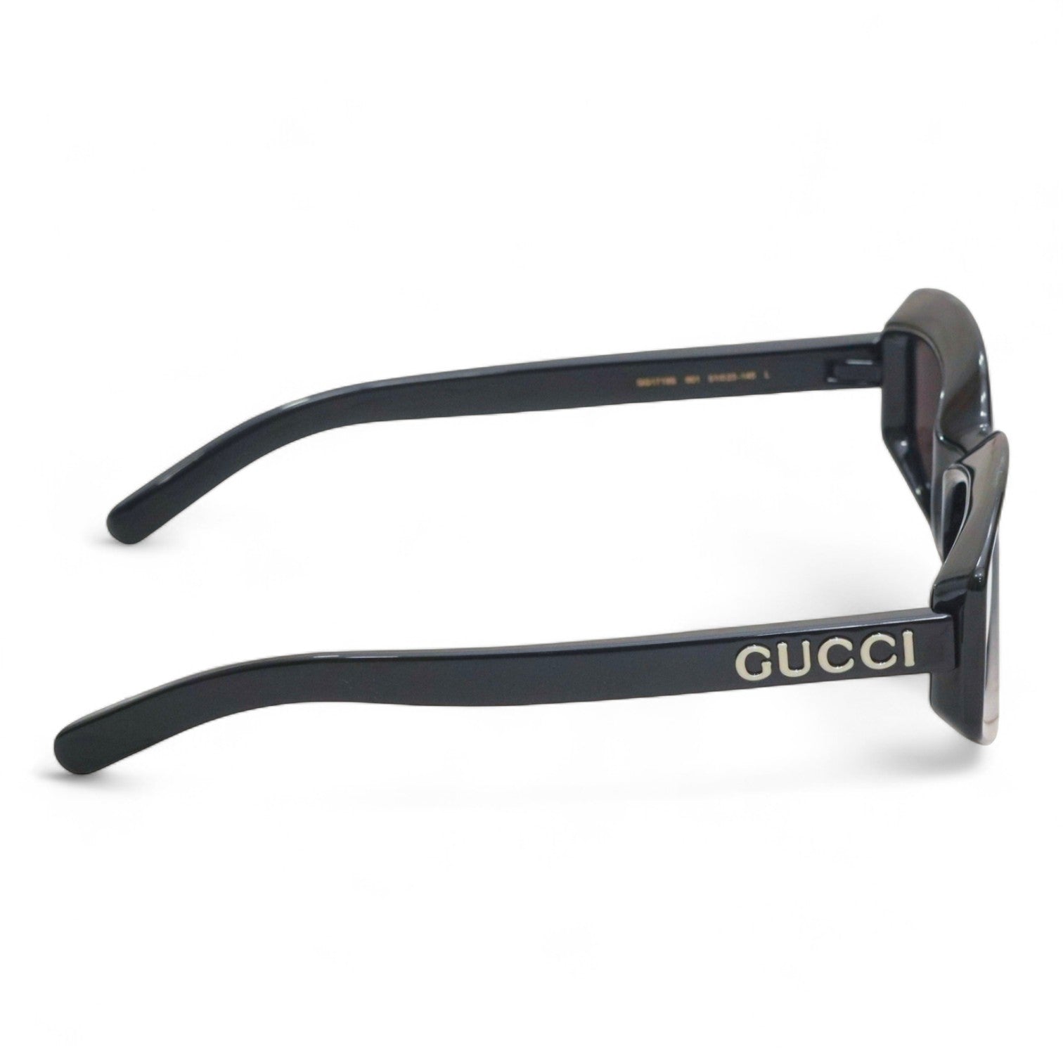 Il concept è ispirato a creazioni Gucci vintage d’archivio reinterpretate in chiave urban di tendenza. Forma vintage in iniettato nero, lenti grigio fumo e logo inciso sulle aste.