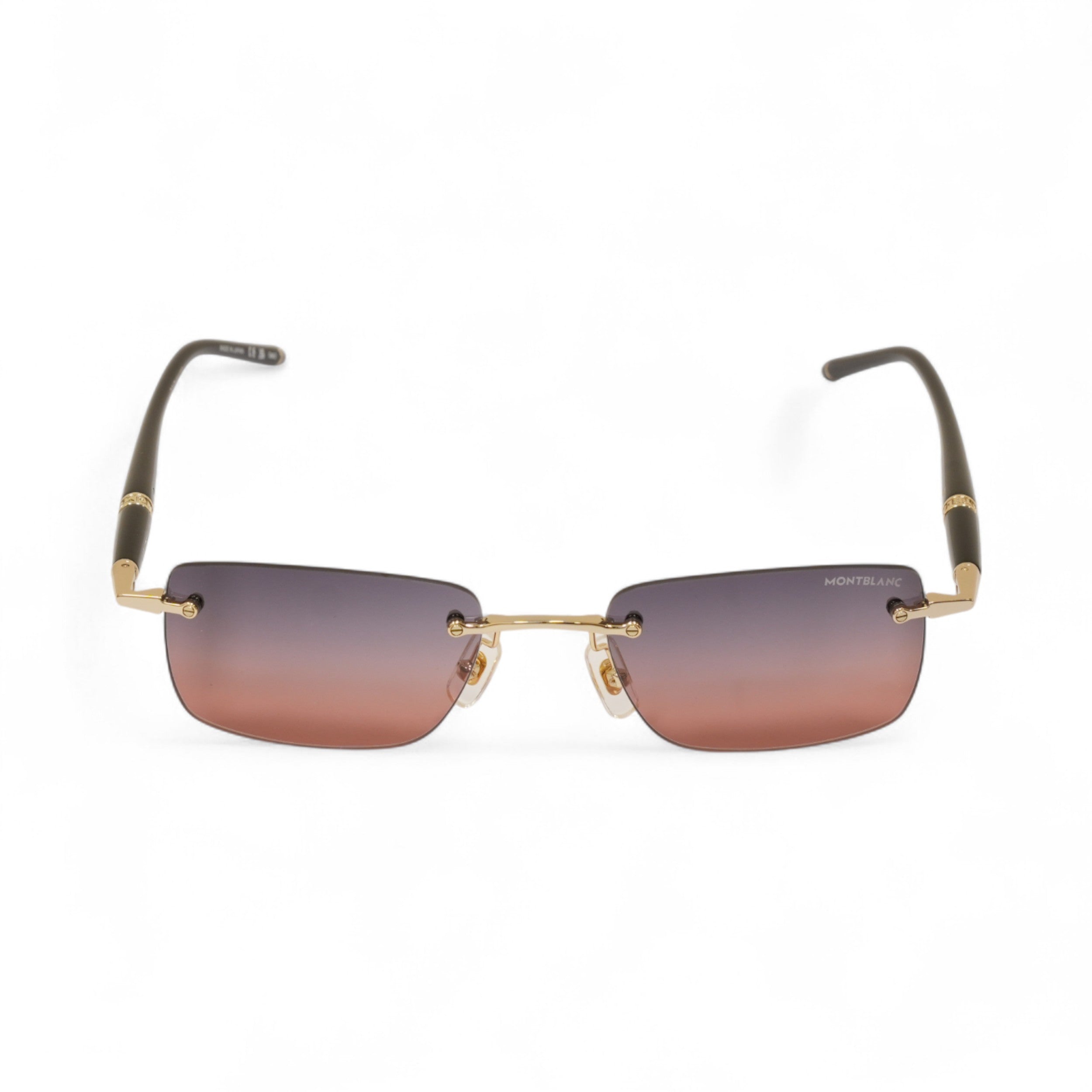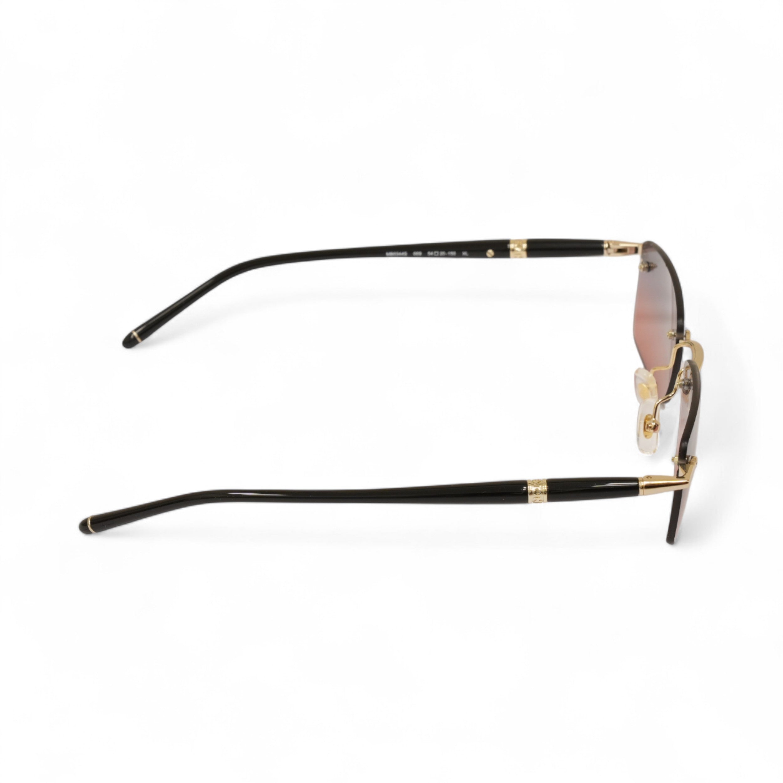 Occhiali da sole glasant in metallo dorato, con aste nere in acetato e lenti sfumate viola, contraddistinti da raffinatezza e produzione secondo i più alti standard e competenze artigianali.